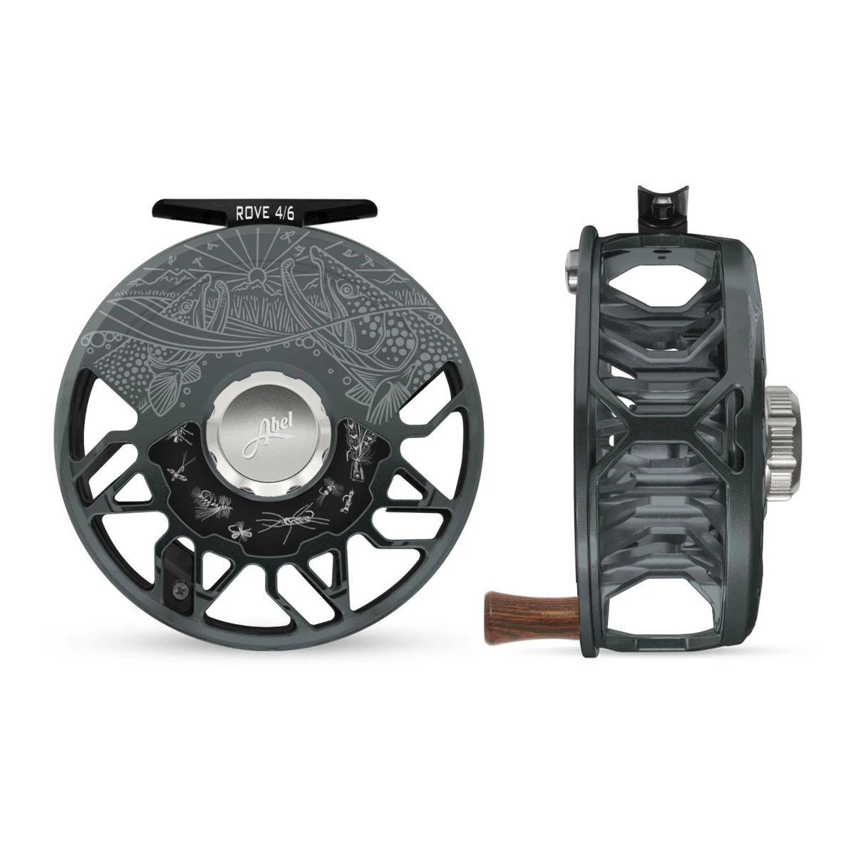 - Laser engraved fresh and saltwater flies on reverse side of drag plate that rotate as line is being retrieved