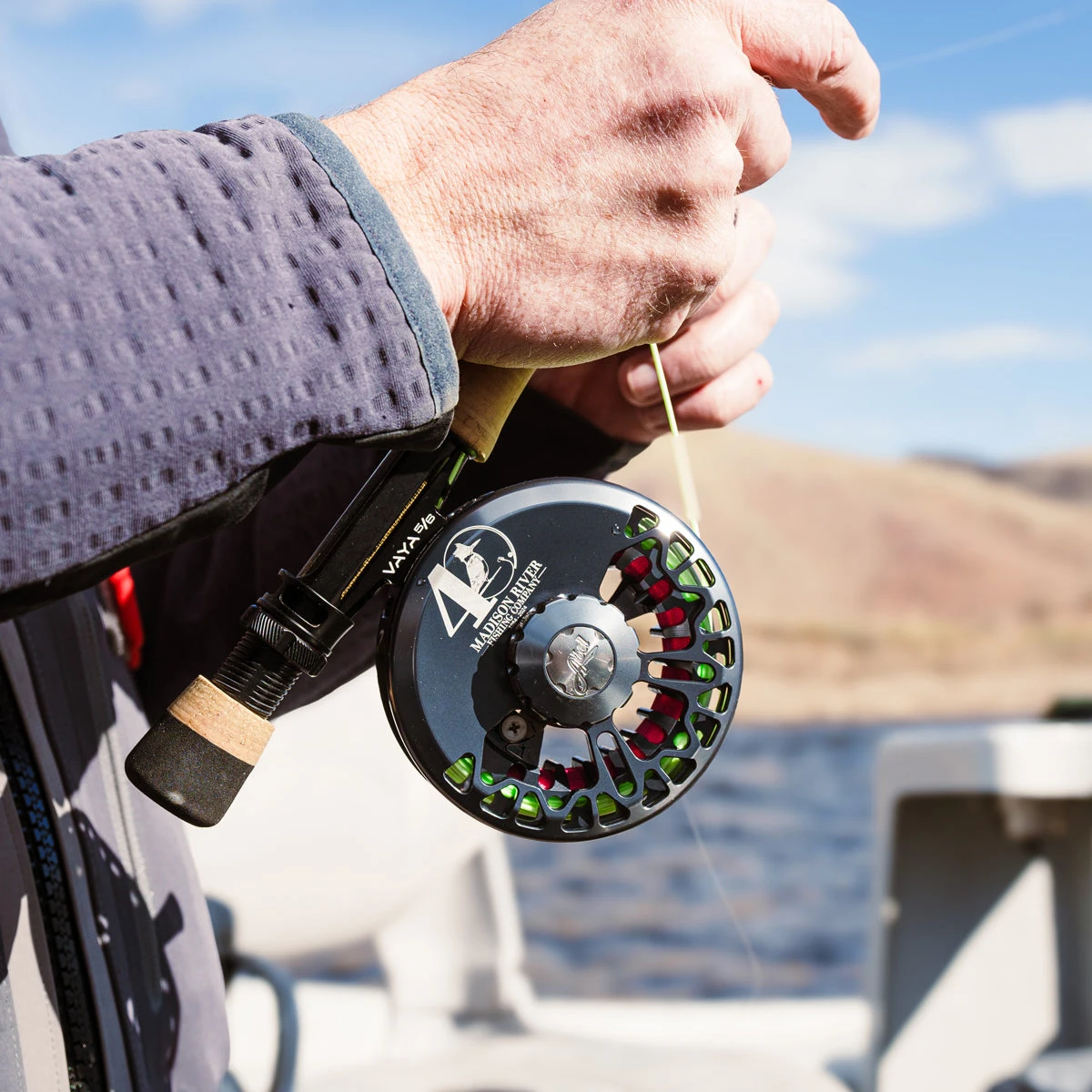Abel Vaya Reel, Spanish for ‘Go!’, as in go outside, go explore, go fishing! Crafted by avid Colorado anglers, the VAYA series features a technical look and feel paired with outstanding performance. The partially-ported VAYA frame offers the unique combination of minimized weight, incredible rigidity, and just enough surface area to highlight Abel’s hand-anodized finishes. The frame interior also features varying sets of CNC-milled fly patterns, relevant to each size of reel. Â