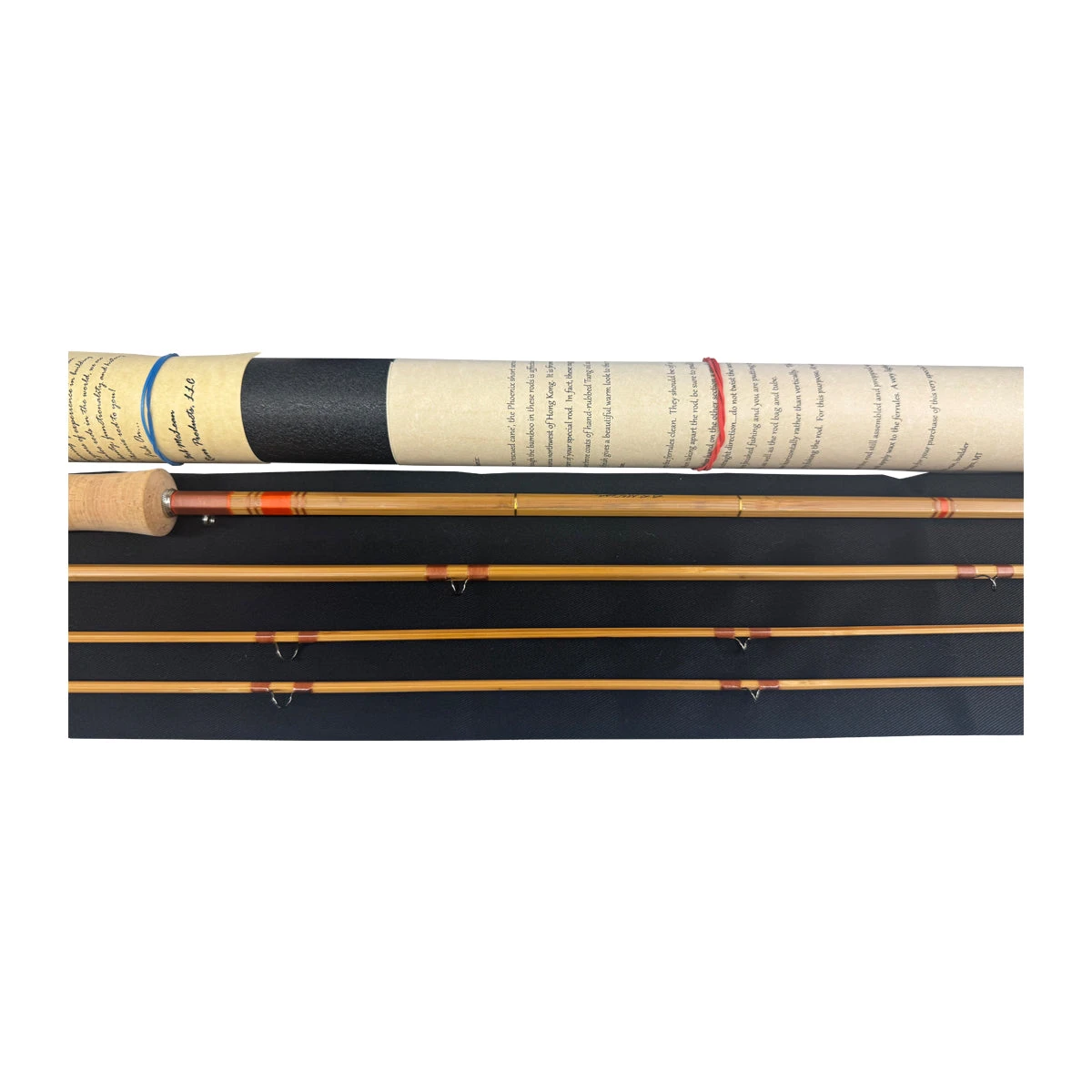 “The Phoenix short series of rods are unique. The bamboo from which these rods are built came from the ashes of a devastating fire in 2017 that destroyed a bamboo rod building facility in Twin Bridges, Montana. After the fire, the few bamboo culms which made up these rods were discarded. These culms were later ‘rescued’. In 2024 a prototype rod was built to check the integrity of the cane. Having found that the prototype not only was a sweetheart to cast, the warm amber color along with the occasional ‘scorched’ darkened look was rather attractive. This formed the beginning of the Phoenix program. With nearly twenty years of experience in building some of the finest bamboo rods in the world, we are proud to pass on the beauty, functionality and history of the Phoenix rod to you!