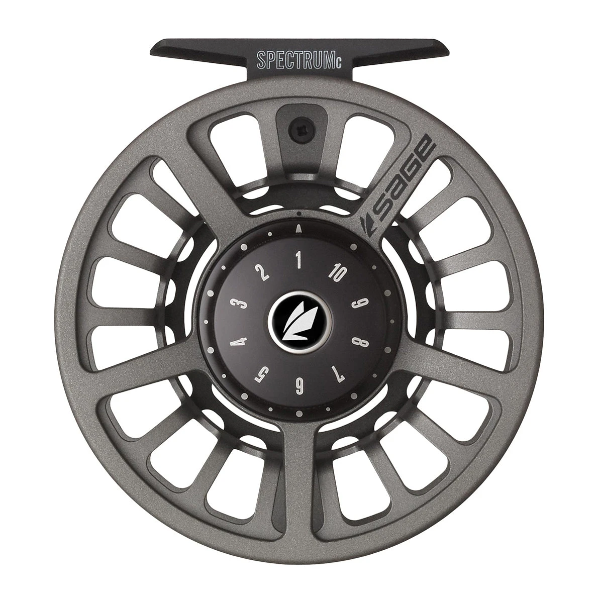 SAGE Spectrum C Grey Fly Reel, The SPECTRUM C features a large arbor with rugged machined die-cast frame and generous concave vented spool. Equipped with the SPECTRUM Family One Revolution Sealed Carbon Drag and unexpected finishing touches like its fully machined drag knob and handle. The SPECTRUM C gives you more than the fish bargained for.